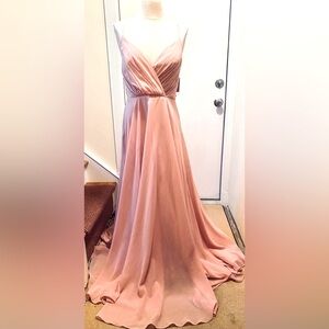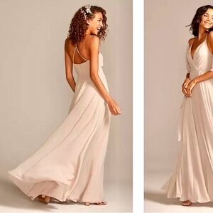 David’s Bridal, NWT, Long Spaghetti V Neck Full Skirt Dress, Sz 10, Ballet