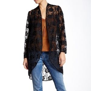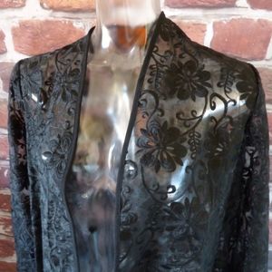 Gorgeous and new with tags. Never worn. Size Large. Although called a cardigan, the fabric does not feel like a sweater. In my opinion, it's more like a sheer blazer. Lovely accent piece.