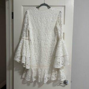 Alexis Lace Bell Sleeve Dress White - Size L