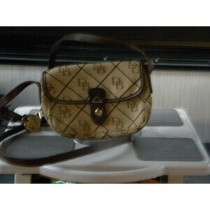 This Dooney & Bourke Signature Canvas Crossbody Bag Small is a must-have for any fashion-forward woman. The bag features a dark brown leather handle/strap that complements the exterior color of brown canvas and leather. The bag is lined with beige fabric, which adds a touch of elegance to the overall design. With a size of small, this crossbody bag is perfect for carrying your essentials without weighing you down. The bag is part of the Dooney Bourke Canvas Signature product line, which is known for its quality and style. Whether you're running errands or going out for a night on the town, this bag is a great accessory to complete your outfit.