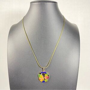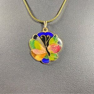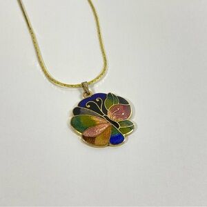 Cloisonné Butterfly Pendant On Gold Tone Chain Necklace