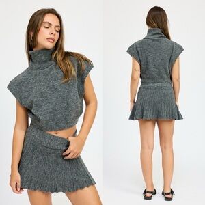 *24 HOUR SALE* Call Me Back Grey Pleated Sweater Skirt