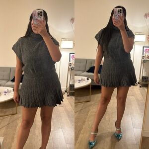 Whoever invented skirts in a soft sweater fabric deserves all the happiness in the world. You get the chic and sexy look of a mini skirt and the soft and comfy feel of a sweater! This cute pleated mini skirt comes in a soft and stretchy grey fabric. You can wear it with a sweatshirt or a band tee or pair it with the matching top. The possibilities for wearing this skirt are endless! The fit is high waisted and the fabric is stretchy so it’s perfect for going out to dinner! The matching top is available in a separate listing!