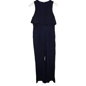 Vince Camuto Wide Leg Ruffled Jumpsuit Navy Size 8 Wide Leg Formal Corpcore