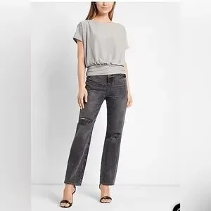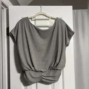 Metallic Short Sleeve Ruched Banded Bottom Tee