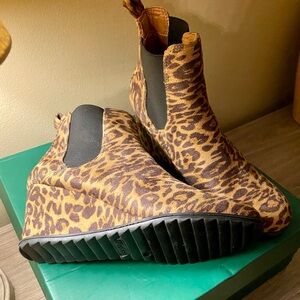 Leopard print ankle wedge booties! With elastic band on side.
