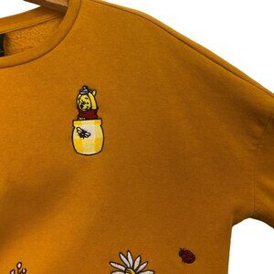 Disney Winnie The Pooh Floral Embroidered Sweatshirt Sz Small Yellow Daisies Bee