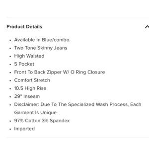 Fashion Nova Change The Panel Two Tone Skinny Jeans - Blue/Combo Full Zip Fly