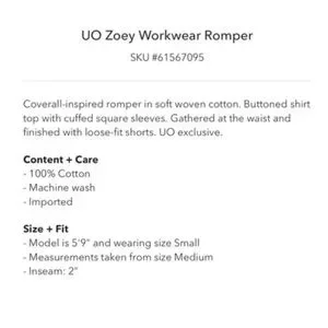 NWT Urban Outfitters Zoey Workwear Gingham Romper Jumpsuit Size XS