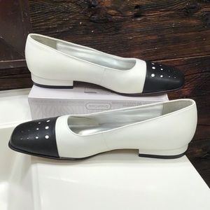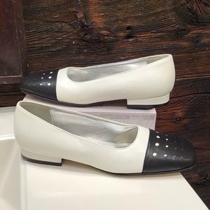NWOT 80s Vintage Leather Ballet Flat Slip on Shoe Capped Toe White SZ 6