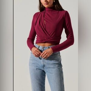 ASTR the label Asymmetrical Pleated Cutout Mock Neck Top , NWT , size XS