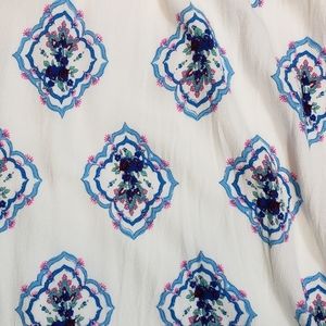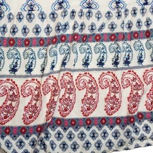 White background with a floral and paisley print