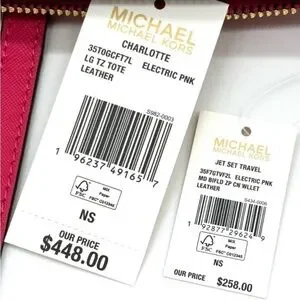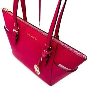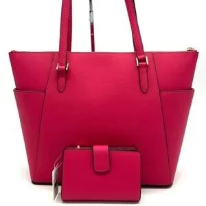 Michael Kors Large Charlotte Tote Bag & MD Bifold Zip Chain Wallet Electric Pink