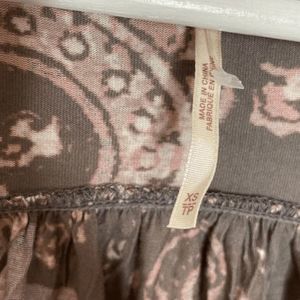 Free People Fiona surplice top in size XS. Crossover front, split bell sleeves, ties in front. 100% rayon, no flaws. Faded (factory) browns and greens.