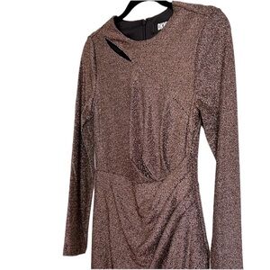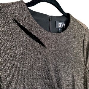 DKNY Metallic Shimmer Evening Long Sleeve Fitted Cutouts Dress NWT (2)