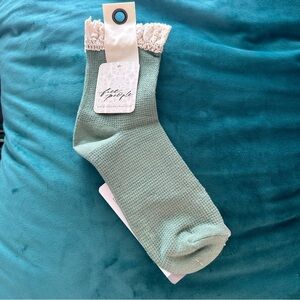NWT Free People Beloved Waffle Knit Ankle Socks light green moss 1 Pair