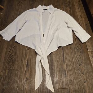 Comfy USA White Gauze Tie Front Top Sz L Large