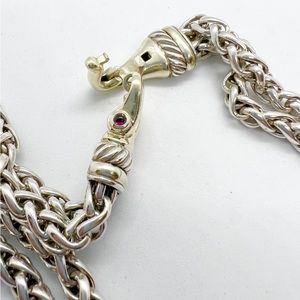 David Yurman Gold Buckle Double Wheat Chain Necklace With Pink Tourmaline