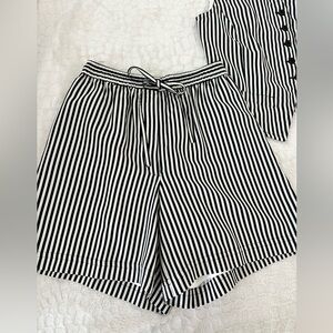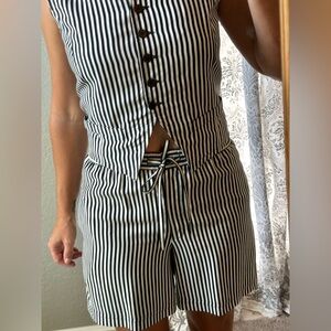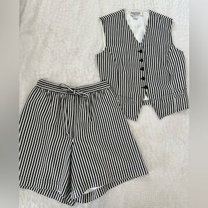 VINTAGE 90s vest and high waisted shorts set w vertical white and black stripes
