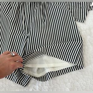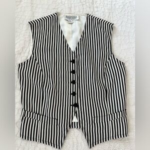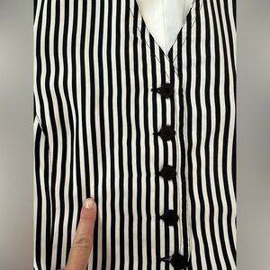 VINTAGE 90s 100% SILK vest and high waisted shorts set w vertical white and black stripes.