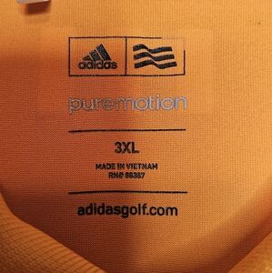 Adidas Puremotion Golf Polo. Orange. Collared with Button Placket. Short Sleeve. Vented Sides. Excellent Preowned Condition. 100% Polyester. Size 3XL. Flat Lay Measurements: Chest 29" Length 32"