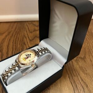 Never been used or worn Mickey Mouse Time Works Watch. Complete with case, paperwork and case cover. Perfect for any Disney lover!
