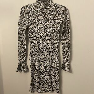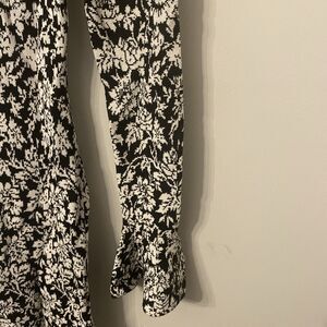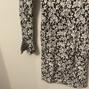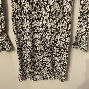 Michael Kors Women Black And White Floral Bell Sleeve Bodycon Dress Size XS