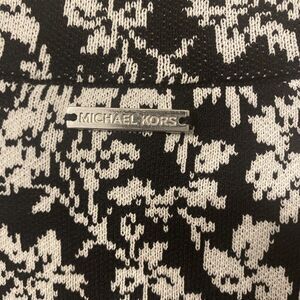 This stunning Michael Kors dress features a beautiful floral pattern and a high neckline with bell sleeves. The dress is made of a soft and comfortable fabric that stretches to fit perfectly on your body. It has a pullover closure and is knee-length, making it suitable for both casual and party occasions.