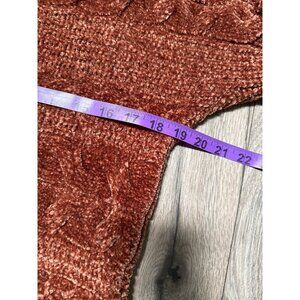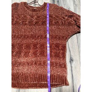 Pink Rose Chenille Sweater L Rust Cable Knit Crew Neck READ Comphy Fall Cozy