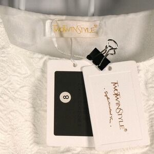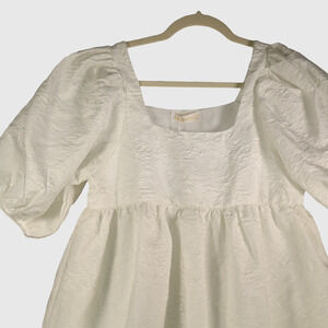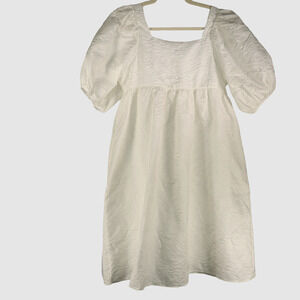 One Dress by Two Twin Style White Dress Girls Size 8 Puff Sleeve Textured Fabric Lined Full NEW