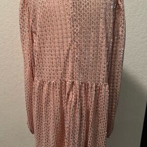 Beautiful long sleeve dress with ruffle skirt hem in light rose tone with rose gold sequins all over. Lined in matching fabric.