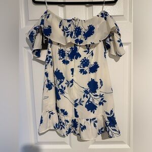 Lulus- Talia White Floral Print Off-the-Shoulder Mini Dress