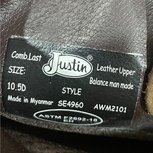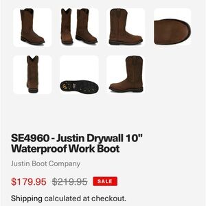 SE4960 - Justin Drywall 10" Waterproof Work Boot Size 10D
