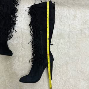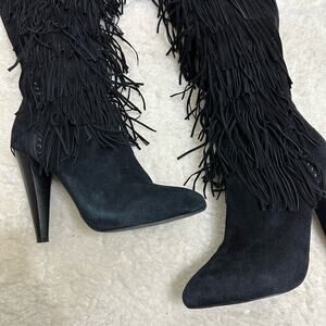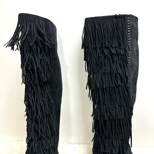 Steve Madden Maraka Over Knee Stiletto Heel Suede Fringe Boots Size 7 Black