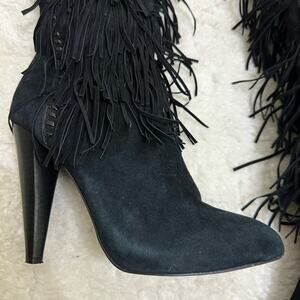 Steve Madden Maraka Stiletto Heel Suede Leather Fringe Boots Size 7 Black #fringeboots #seudeboots #stilettoboots #sexyboots #bohoboots #festivalboots #westernboots