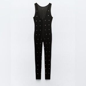 Zara JUMPSUIT w/RHINESTONE ORGANZA Size Small - NWT