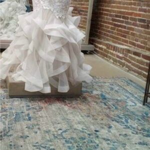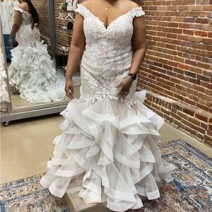 Hi ladies I am selling my allure wedding dress that I said yes to about 6 months ago. I purchased it 2 sizes (size 22) to big because I fell in love with the design and I’ve lost more weight so I ended up purchasing another dress that’s my size. I love the detail, the silhouette, the lace, the ruffles, the beads, the train, and the buttons on this beauty but I need to get it out of my guest closet! Help me out ladies!