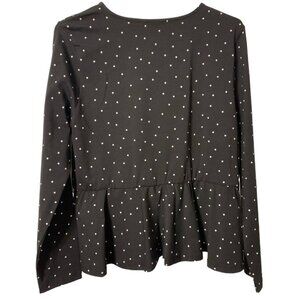 ASOS Design Peplum Blouse Top Shirt Black Polka Dot Long Sleeve Size 14