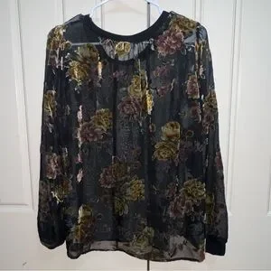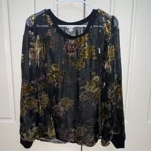 A New Day Sheer Velvet Floral Long Sleeve Blouse Size Large