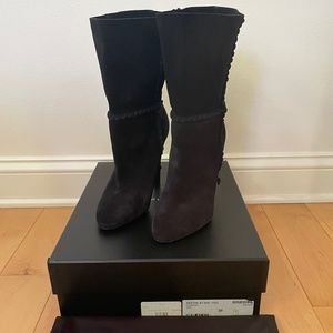 Saint Laurent Mica 105mm Black Suede Whipstitch Ankle Booties 38 IT