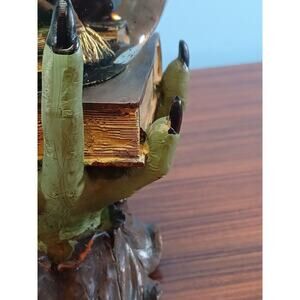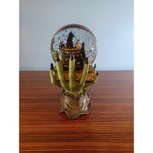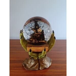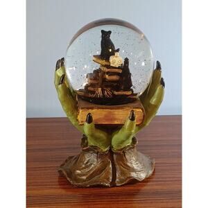 This witch hand is holding some spellbooks with a waterglobe. shake, it has black bats and glitter and shine. It is a Fascinating piece. Definitely catches the eye. It has everything your Halloween desires. Witches black cats spellbooks with a waterglobe level to it. It's in good Pre-Owned Shape. No knicks No Chips Look at all pictures for complete condition Any Questions Please Ask Prior to purchasing Thanks for looking