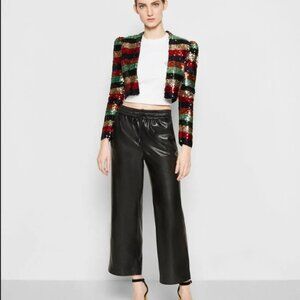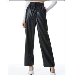 New Alice + Olivia Benny Baggy Faux Leather Pants in Black Size M#2120