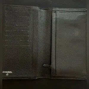 Interior is FLAWLESS with many credit card slots, zippered coin pouch, and cash compartments. Exterior shows normal wear for a pre-loved wallet.