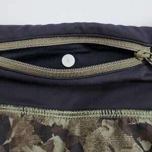 Excellent pre-owned condition, Lululemon Run Speed short Mystic Jungle Fatigue in Camo Green Black stretch, size 6.