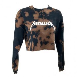 METALLICA Acid Wash, Distressed "Cropped" Crop Top Long Sleeve Crewneck Sweatshirt. Size: Small, Medium, Large and XL