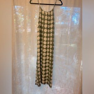 Merona Patterned Ivory and Green Strappy 70’s Retro Long Maxi Dress size Small.