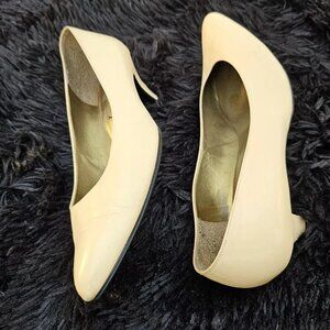 YSL Paris Women Heel Sandal Beige Leather Upper Shoes Saint Laurent Size 36.5 6US