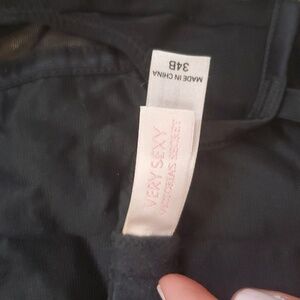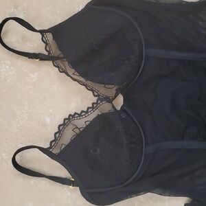 Victoria secret very sexy black lingerie, like new!Adjustable straps and hook closure in the back. it has mesh sides and bottom as emovable stocking stays. Black lace top stocking includes, no holes or runs.