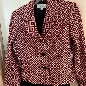 Le Suit red and black pattern jacket and solid black skirt. P2P:20” W-17”L-23” Open to reasonable offers. I have too many professional clothes so am selling those that I’m no longer using.
