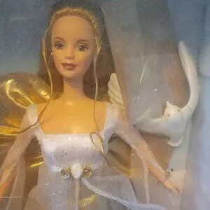 This beautiful Angelic Inspirations Mattel Special Edition #24984 Angel Barbie comes in a gold and white gown with a dove and golden brush! Perfect for your Little Angel or Barbie Collection!! Perfect for Christmas time, Baptism, or care box!